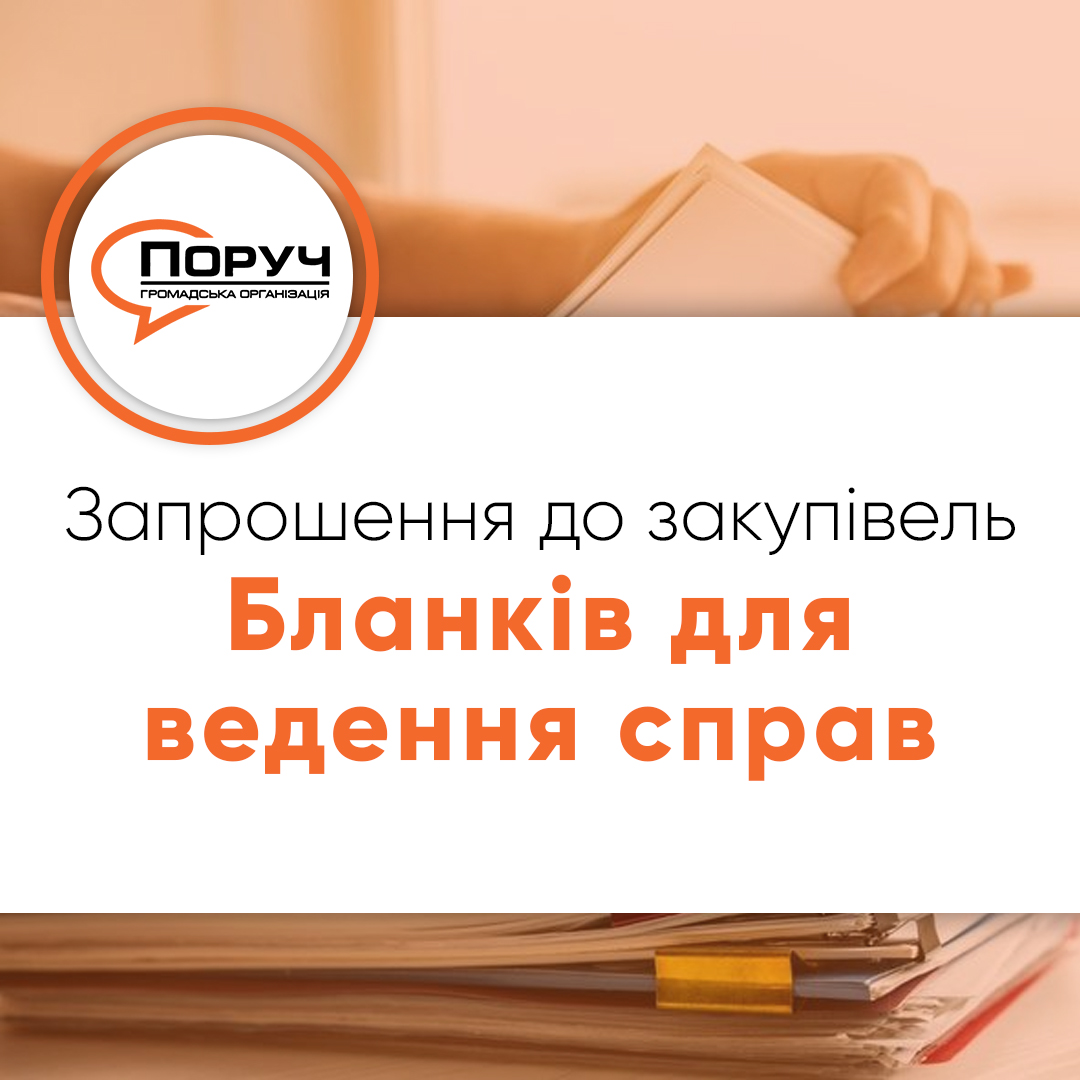 Запрошення до закупівлі – Бланків для ведення справOn 01.03.202502.05.2025ВГО “Поруч” запрошує постачальників до участі у закупівлях. Предмет закупівлі – Бланки для ведення справ. 3_010325_Запрошення до участі у конкурсі на закупівлю бланків.docx – Google Документы